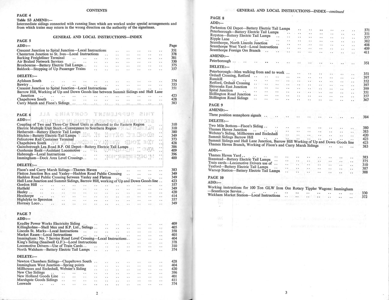 The Sectional Appendix itself amplifies the Railway's Rule Book - it applies it to specific locations on their network. A new edition of the Sectional Appendix was produced at intervals. In the meantime a series of supplements came out to provide updates. Some items were to be deleted and some amended, while many items were new. To see part of the index to this supplement, click here.