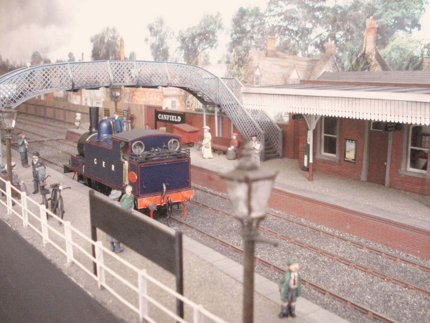 Canfield is a 7mm layout that circles the top of my house, three quarters being scenic in rooms (60ft), and a quarter in dark loft. It depicts a secondary GER line somewhere in North Essex/West Suffolk and takes its name from Great Canfield where my forbears farmed for about 500 years. Canfield is a modest country town served by a through line, with a short branch line to a low-level goods yard and engine shed.
