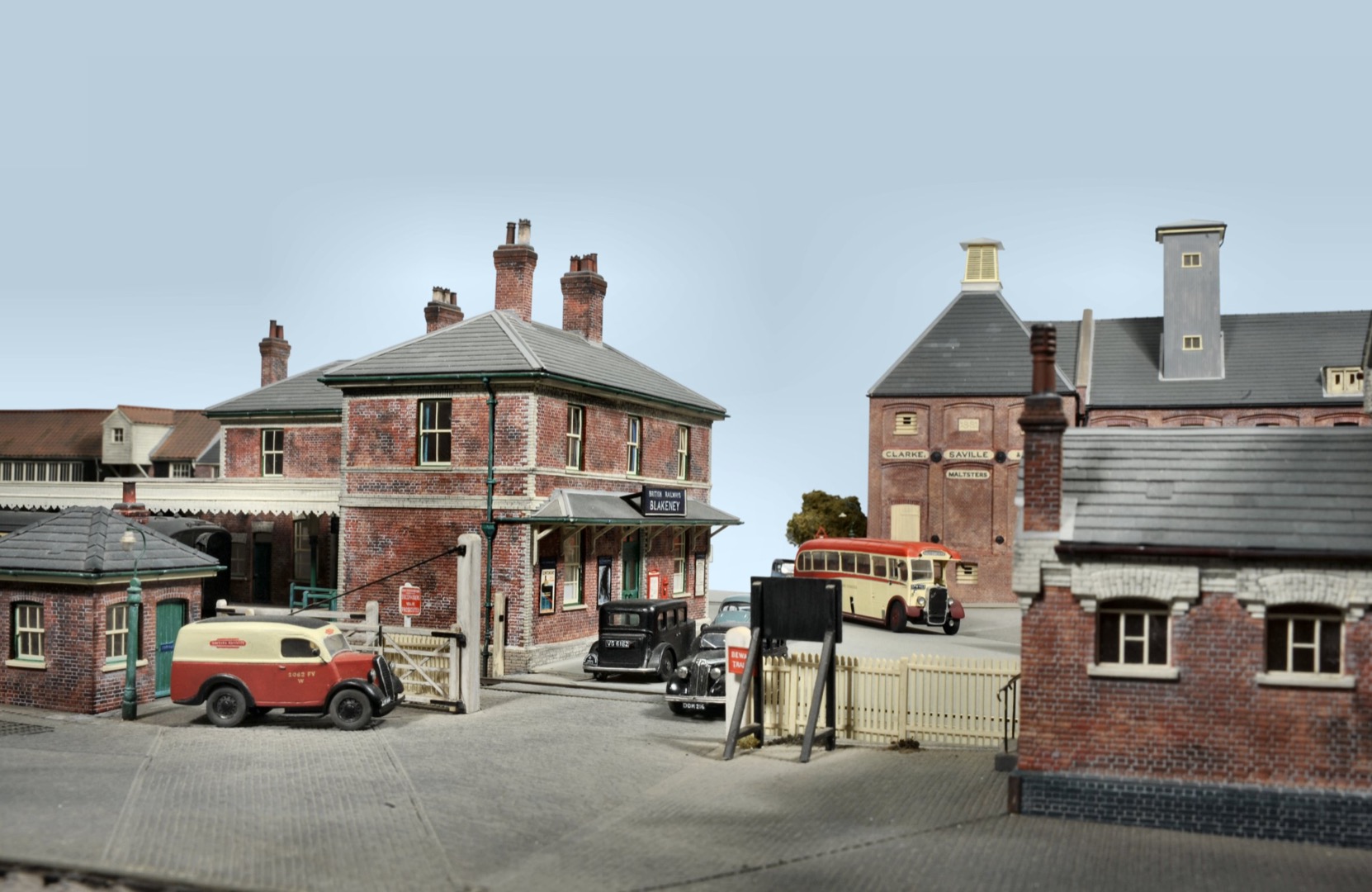 This picture just oozes the atmosphere of the 1950’s Anglian railway scene as we look towards the station building with the yard buildings and the Maltings in view. Geoff is a true “all-rounder” when it comes to modelling. He has a reputation of being good at modelling “everything” in layouts usually well beyond a standard that most of us ever hope to reach. This includes all the road vehicles in this scene.