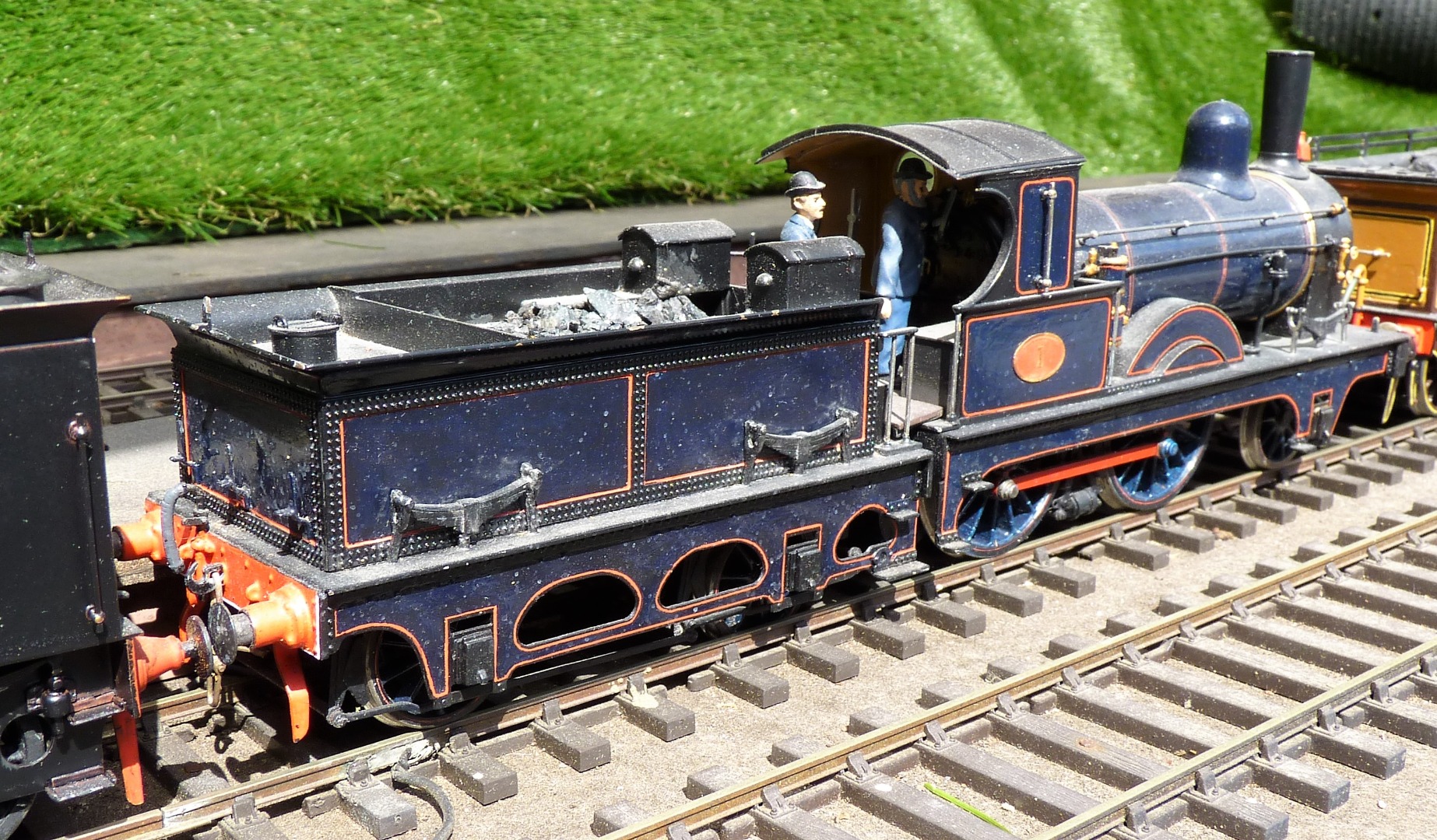 No 1 is a Peter Kay kit, believed started by R Farmin, who had problems with the driving wheels, which were by Alan Gibson. I have fitted “Walsall” cast iron replacement driving wheels and Alan Gibson pony and tender wheels. There are no pick-ups, the loco and tender wheels are insulated on opposite sides and use an insulated coupling. The motor/gearbox is a Portiscap RG7 and the loco was painted by the late Phil Abbot.