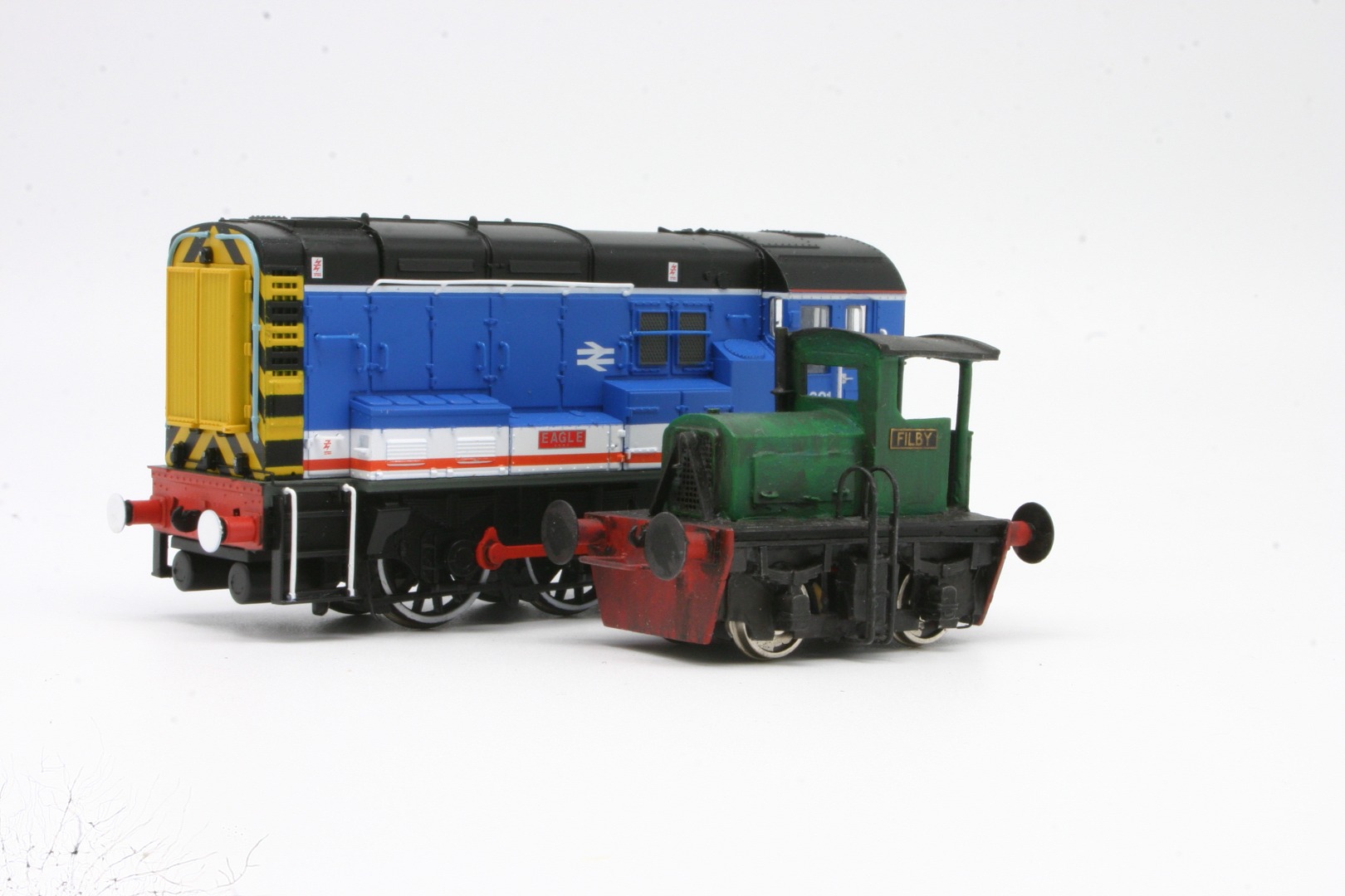 So to try and address this fact i thought it would be good to share with you 6 of my mixed collection of East Anglian themed diesel shunters. not all are finished as you will see from the images however i hope they will inspire you to have a go yourselves. they have all be photographed next to a BR class 8 shunter for scale, i think this will go to show that although this is thought of to be a small loco its huge in comparison to its industrial companions, it just goes to show.... you don't need much space to run one of these locomotives.....