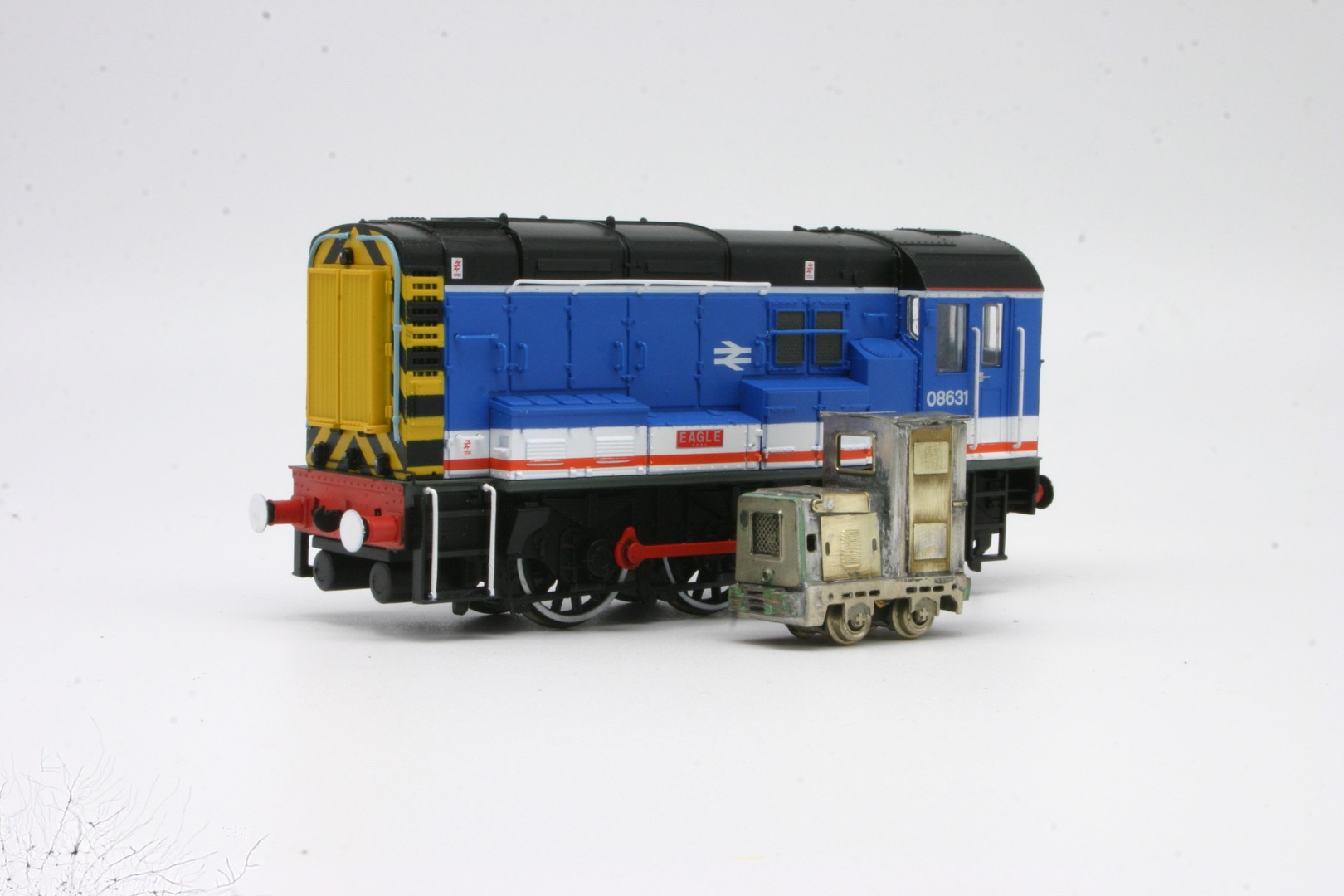 How small can you go? well tiny is the answer, this loco was built from a no longer available Brian Madge Kit and it works, although i am struggling to work out where to put the DCC decoder..... these little Locos got everywhere and can be used for all kids of applications, possibly one of the more famous ones was based at the BR central materials depot at Chesterton Junction just north of Cambridge well into the 1980's so as this particular 08 was based at Cambridge this pairing might have actually happened!